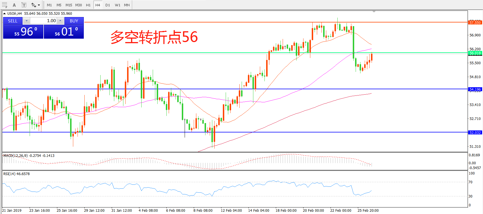 交易策略:在56.00  之下看跌,目标54.00    52.00