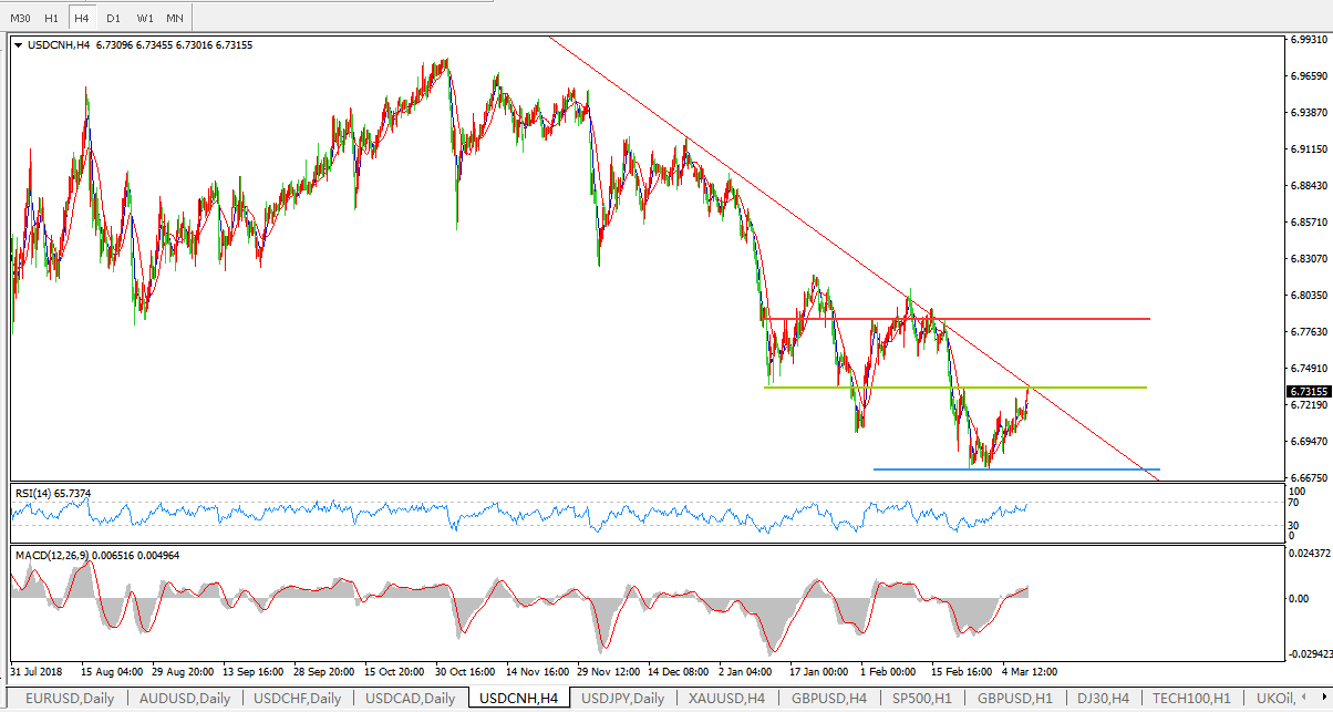 美元兑人民币USDCNH 4小时图: