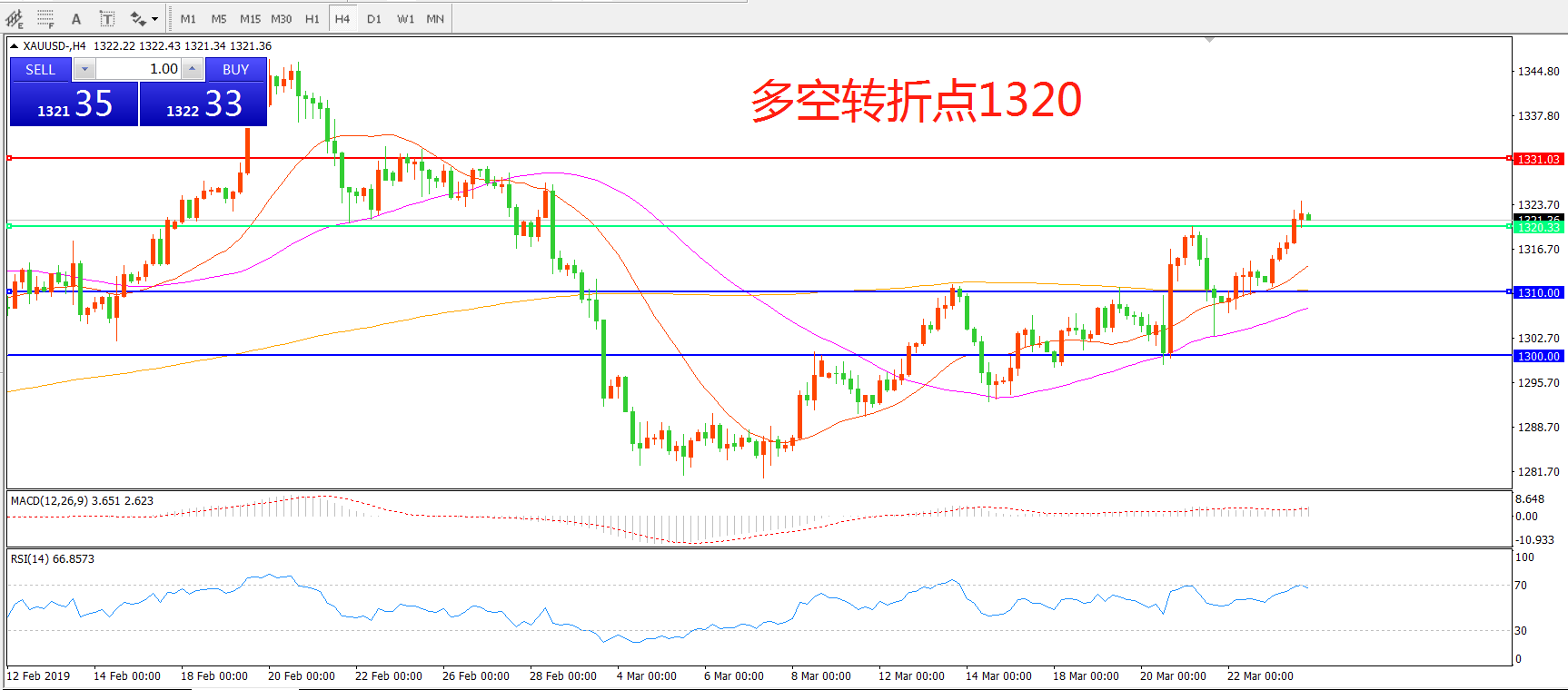 交易策略:在1320.00之上看涨,目标1330.00   1340.00