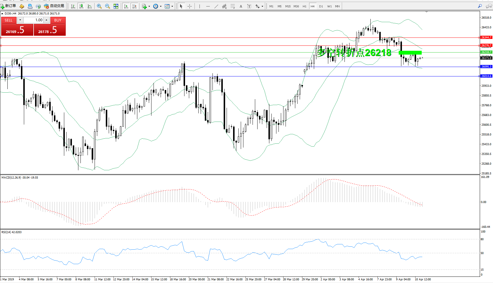 道琼斯指数DJ30—— 4小时K线图显示: