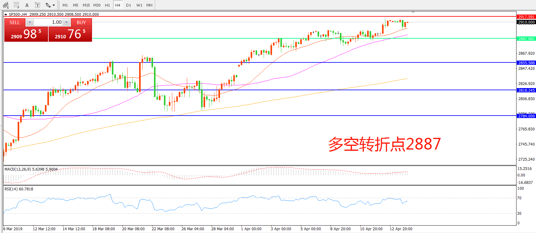 多空转折点:2887.00
