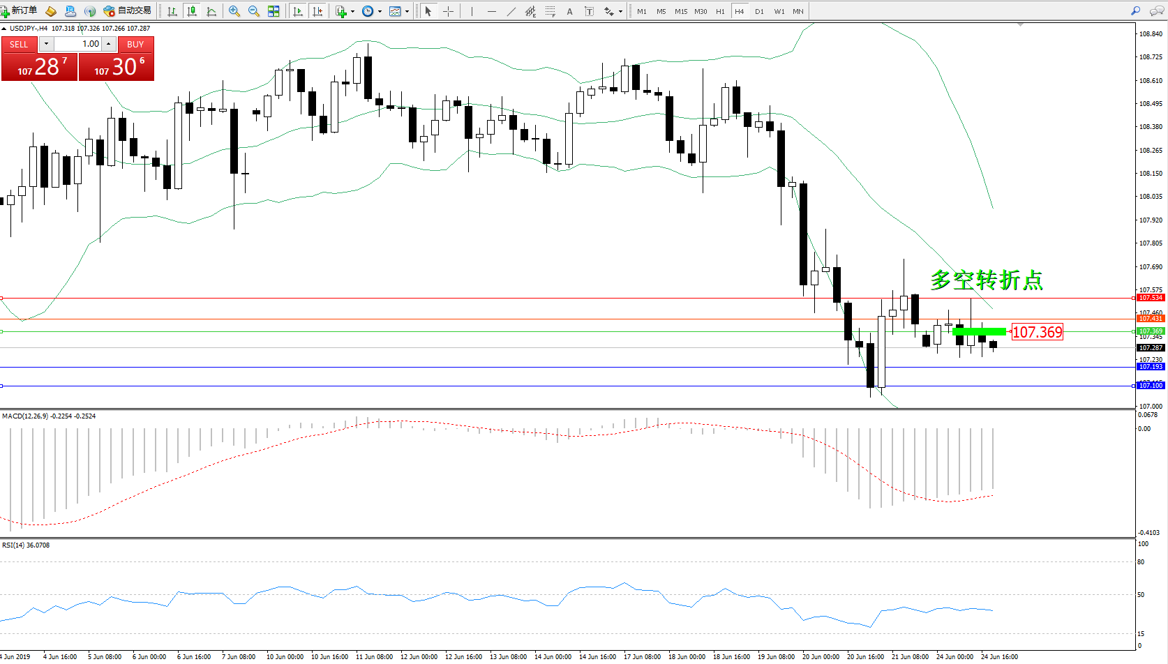 美国不甚理想的经济数据进一步强化了美联储7月降息的预期,令美元不断下挫,不过,在同样背景下,美元兑日元的跌幅却相对缓和,并未再度触及此前录得的逼近107关口的低位。日元眼下的走势跑输欧系货币和风险货币,是因为此前伊朗局势一度剑拔弩张的气氛,在眼下暂时趋于缓和。分析师同时认为,日本央行此前面对宽松预期的进一步表态,也为日元涨势起到了限制作用,在全球央行宽松竞赛中,日本央行很可能不会坐视日元继续飙升,而是备好了应对措施。在此状况下,即使美元兑日元进一步跌破107关口,下方进一步探底至106.60一线,也是短期走势的极限了。