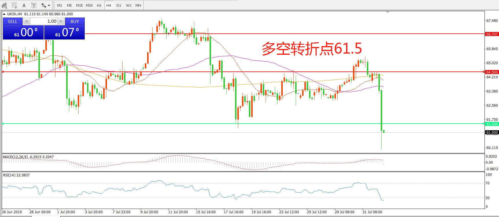 多空转折点:61.50