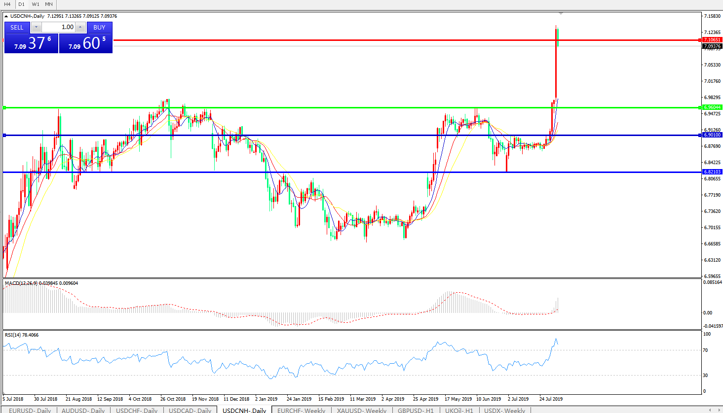 技术面简析:日图均线呈发散上行态势,汇价突破7.0整数关口后急速拉升,MACD运行在0轴上方且动能快速放量,RSI攻入超卖区间后有下行迹象,预计汇价将维持高位整理,不排除进一步上行可能。