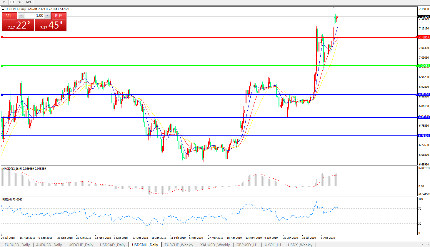 美元兑人民币USDCNH    日线图: