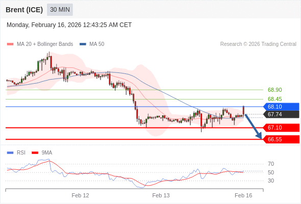交易策略: 在 68.10 之下,看跌,目标价位为 67.10 ,然后为 66.55 。