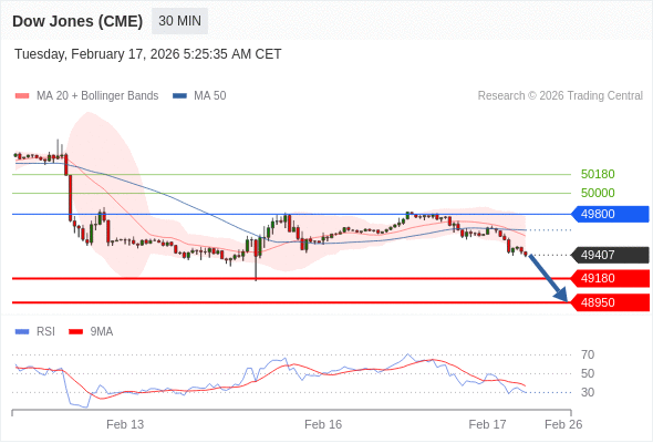 在 49800 之下,看跌,目标价位为 49180 ,然后为 48950 。