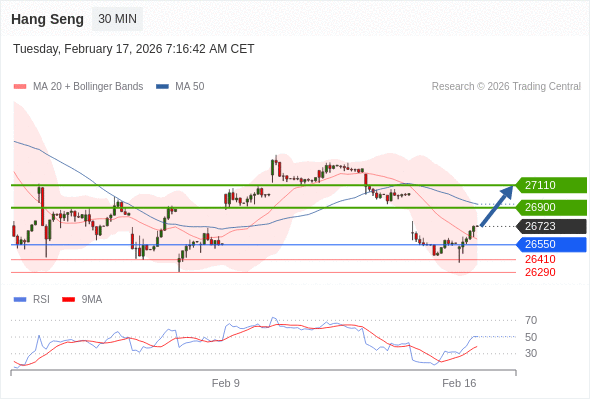 在 26550 之上,看涨,目标价位为 26900 ,然后为 27110 。