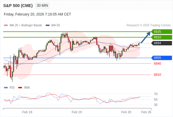 交易策略: 在 6855 之上,看涨,目标价位为 6910 ,然后为 6925 。