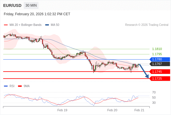 在 1.1780 之下,看跌,目标价位为 1.1745 ,然后为 1.1725 。