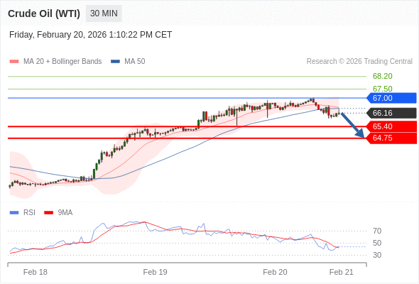 在 67.00 之下,看跌,目标价位为 65.40 ,然后为 64.75 。