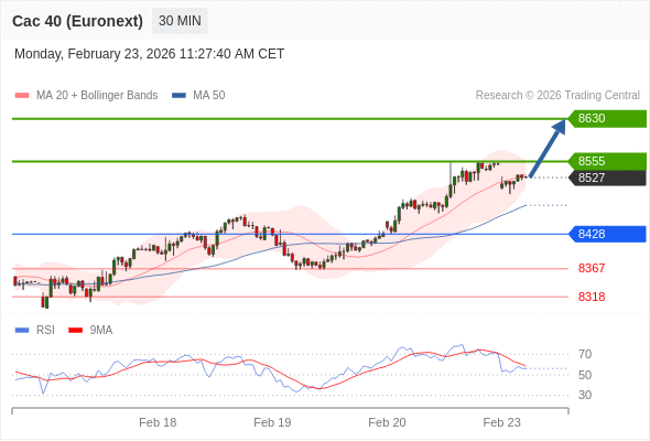 在 8428 之上,看涨,目标价位为 8555 ,然后为 8630 。