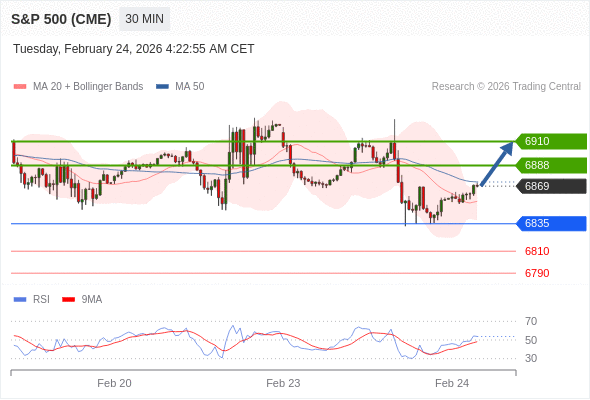 在 6835 之上,看涨,目标价位为 6888 ,然后为 6910 。