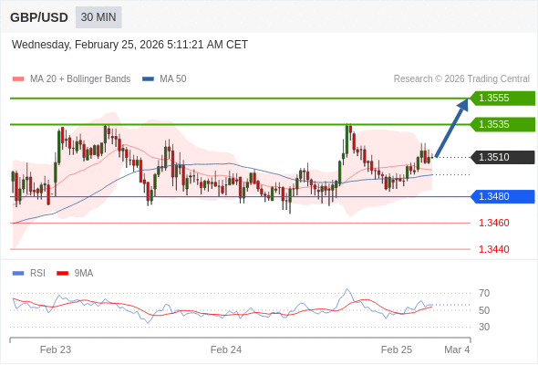在 1.3480 之上,看涨,目标价位为 1.3535 ,然后为 1.3555 。