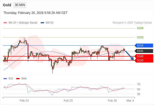 在 5215 之下,看跌,目标价位为 5168 ,然后为 5150 。