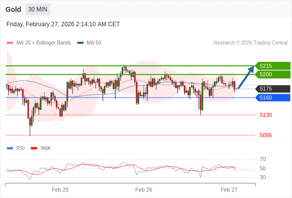 在 5160 之上,看涨,目标价位为 5200 ,然后为 5215 。