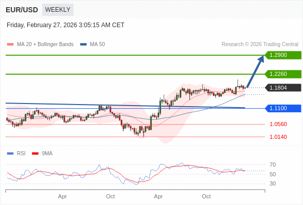 在 1.1100 之上,看涨,目标价位为 1.2260 ,然后为 1.2900 。