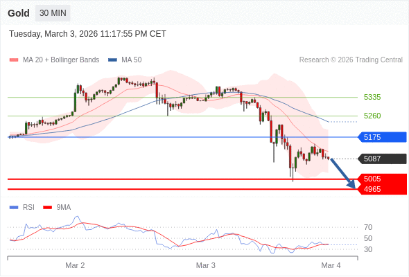 在 5175 之下,看跌,目标价位为 5005 ,然后为 4965 。