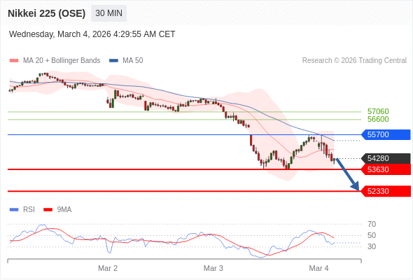 在 55700 之下,看跌,目标价位为 53630 ,然后为 52330 。