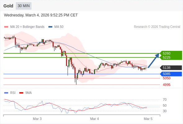 在 5085 之上,看涨,目标价位为 5225 ,然后为 5260 。