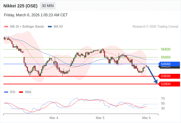 在 54940 之下,看跌,目标价位为 53630 ,然后为 52800 。