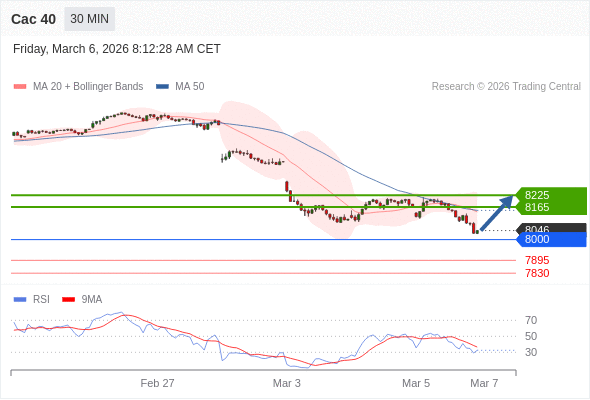 Cac 40 当日内: 超短线(当日内)支撑位在8000附近。