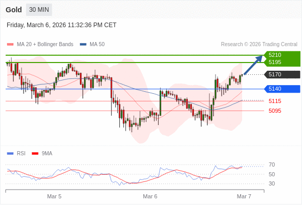 在 5140 之上,看涨,目标价位为 5195 ,然后为 5210 。