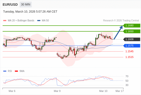 交易策略: 在 1.1575 之上,看涨,目标价位为 1.1650 ,然后为 1.1680 。