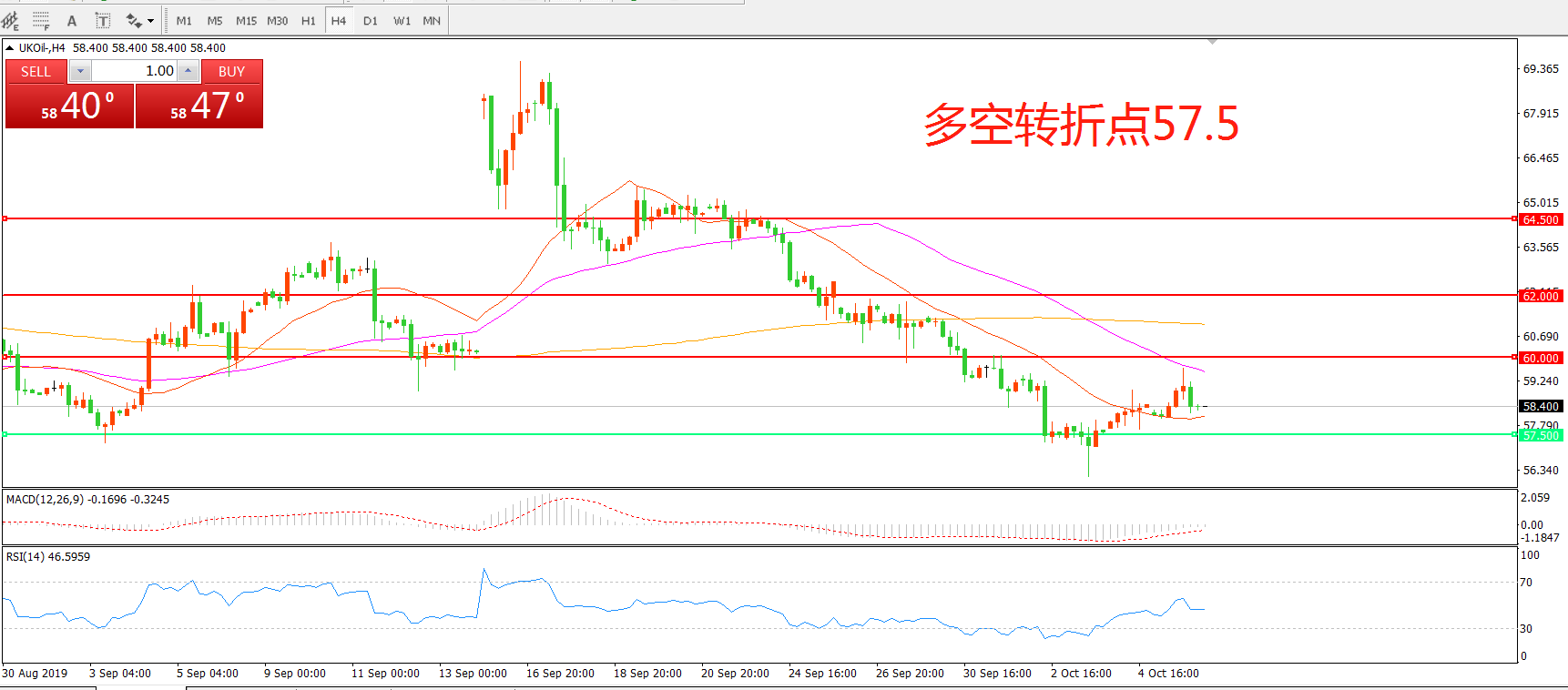多空转折点:57.50