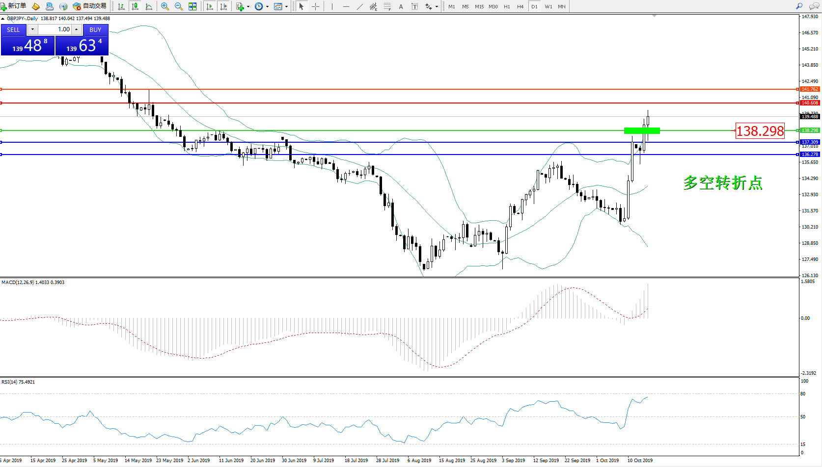 交易策略:138.298上方看涨,目标140.608、141.762