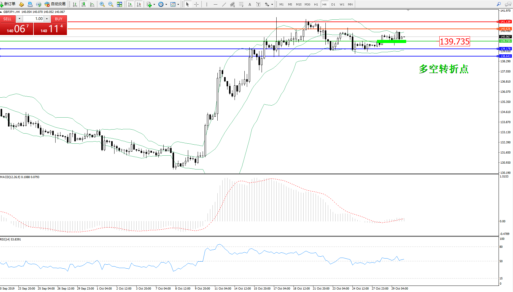 交易策略:139.735上方看涨,目标140.626、141.139