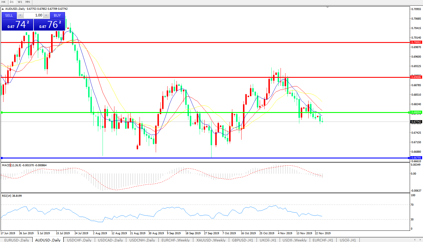 澳美跌破0.68关口显弱势,短期汇价料将继续走弱