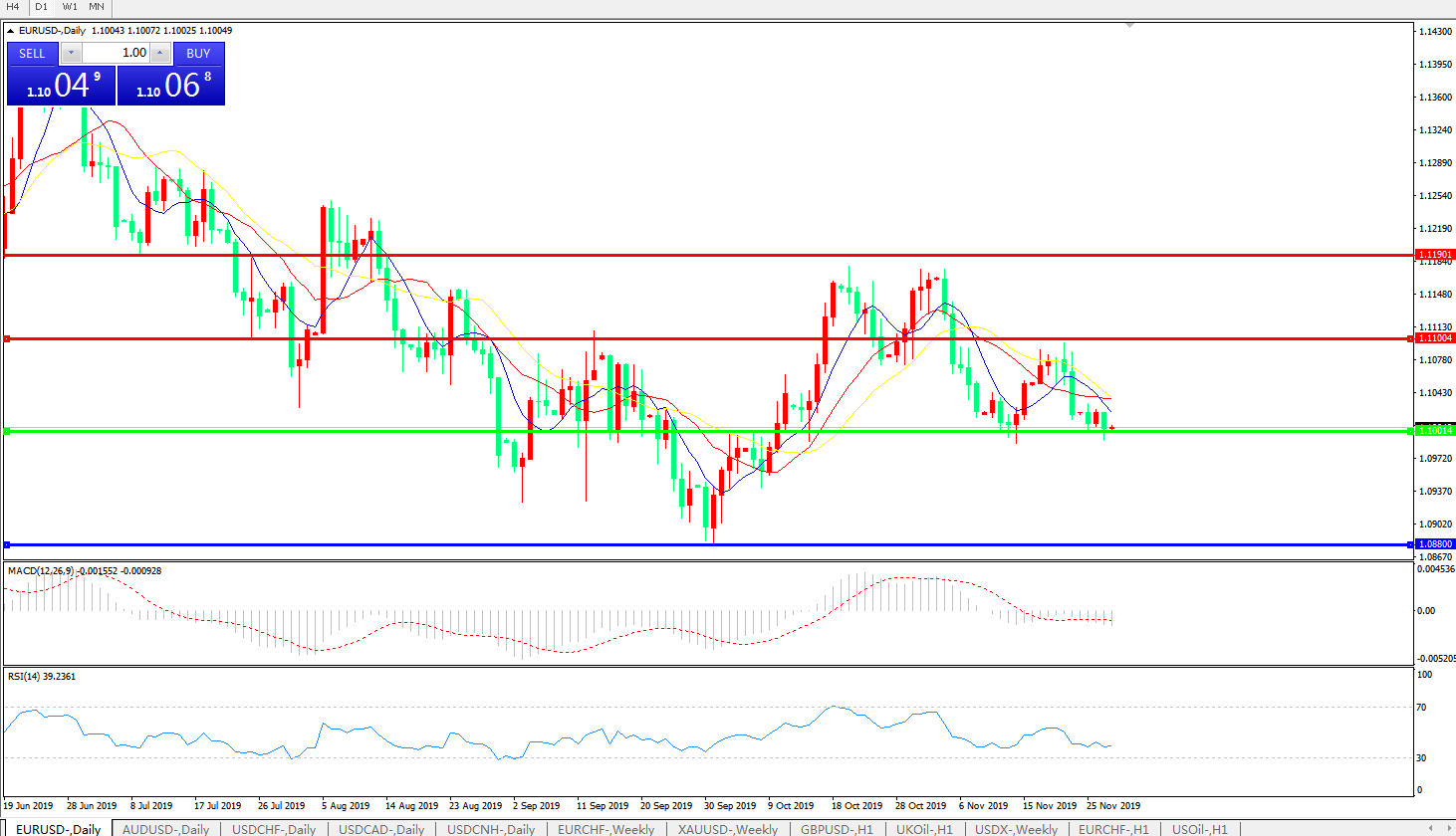 交易策略:1.1000上方看涨,目标1.1100、1.1190