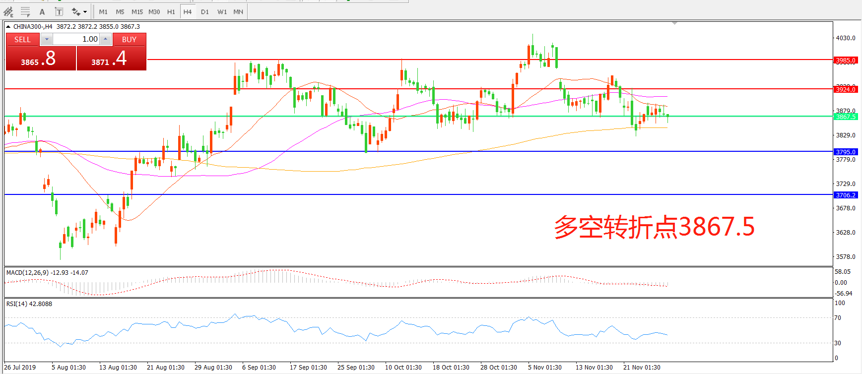 多空转折点:3867.50