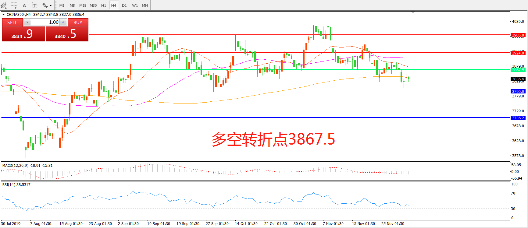 多空转折点:3867.50