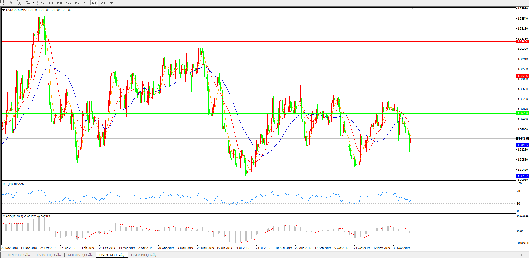 美元兑加元USDCAD 日线图: