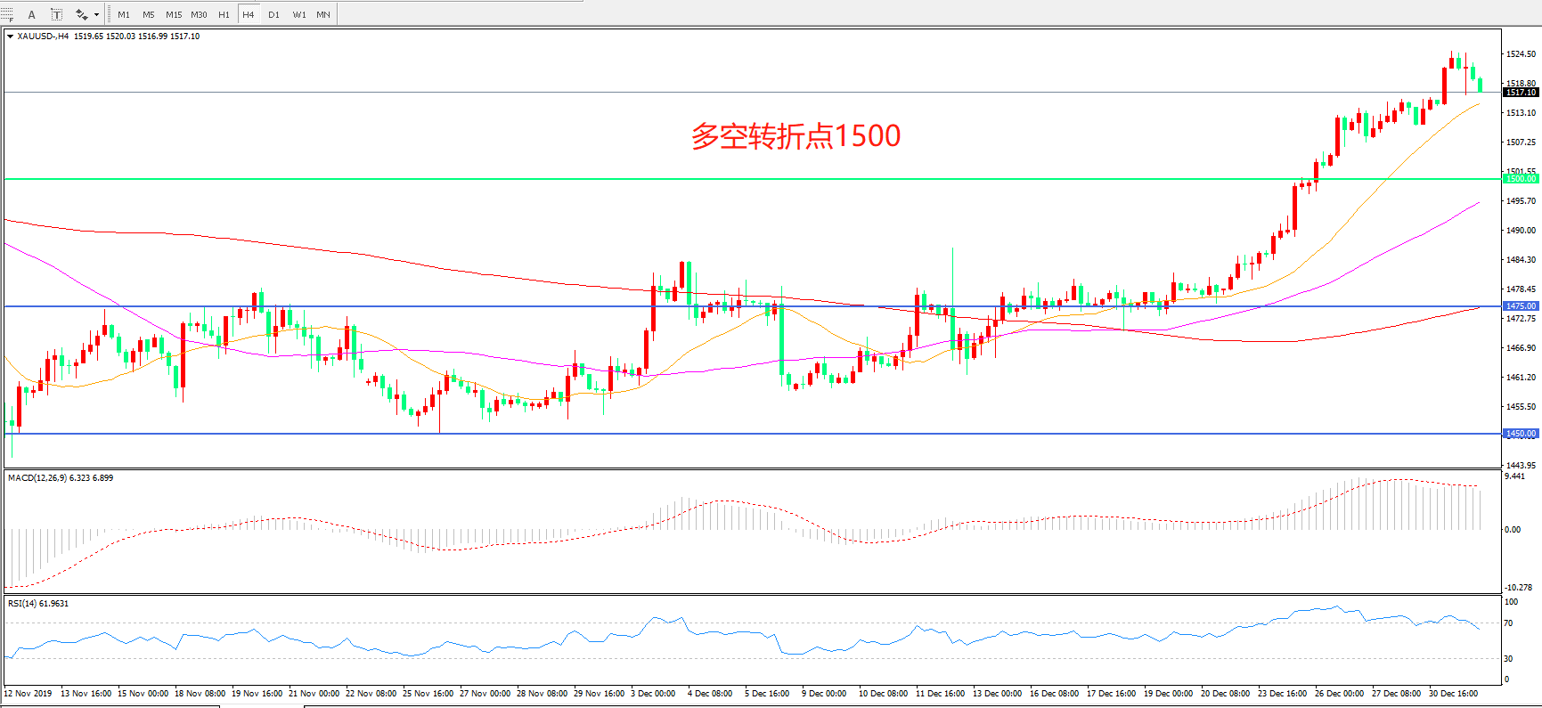 多空转折点:1500.00