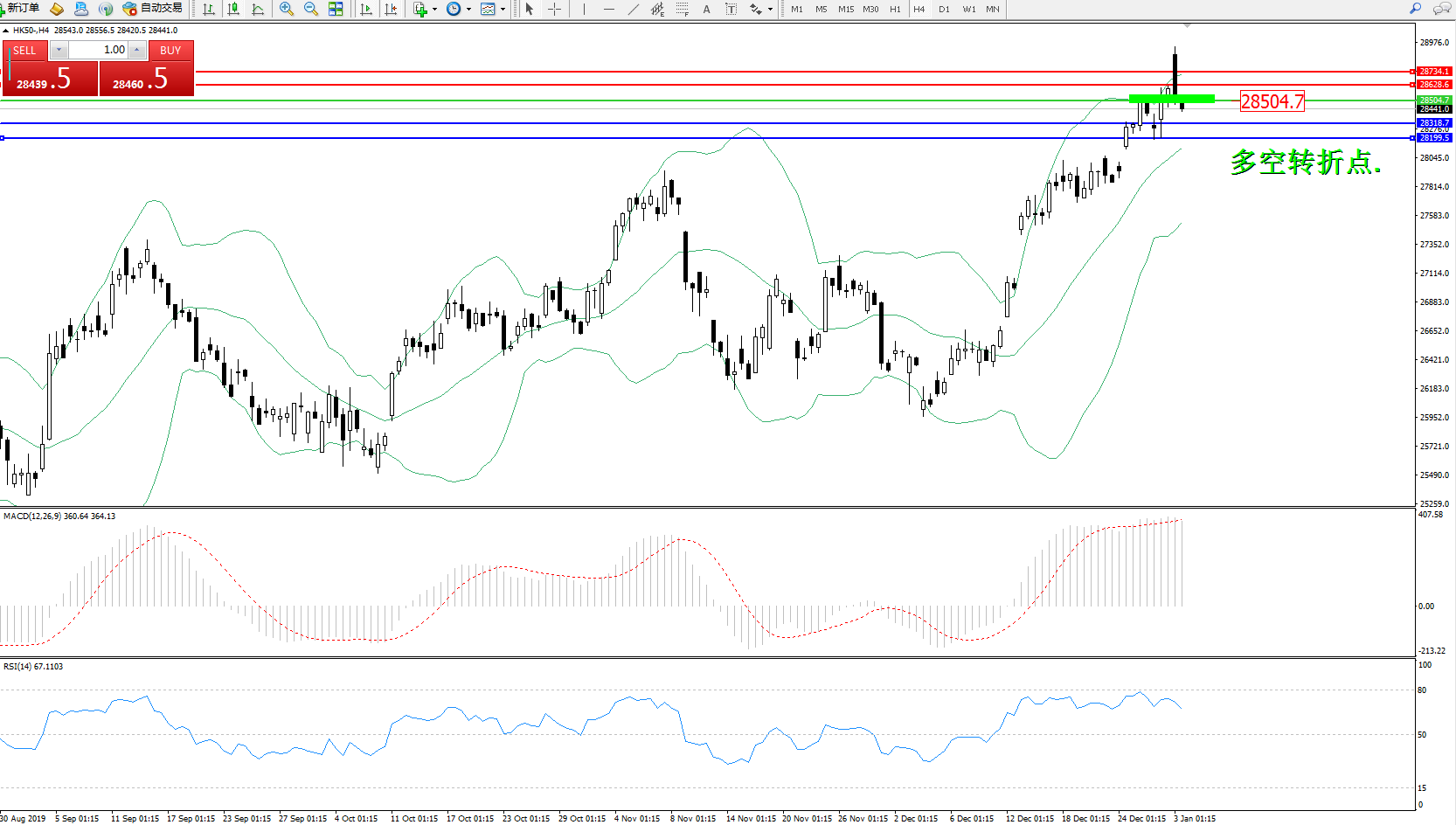 恒指HK50 ——4小时K线图显示: