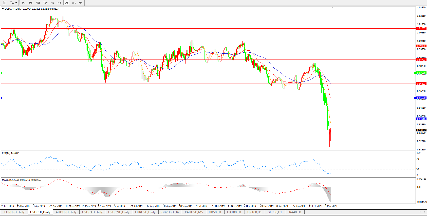 美元兑瑞郎USDCHF 日线图: