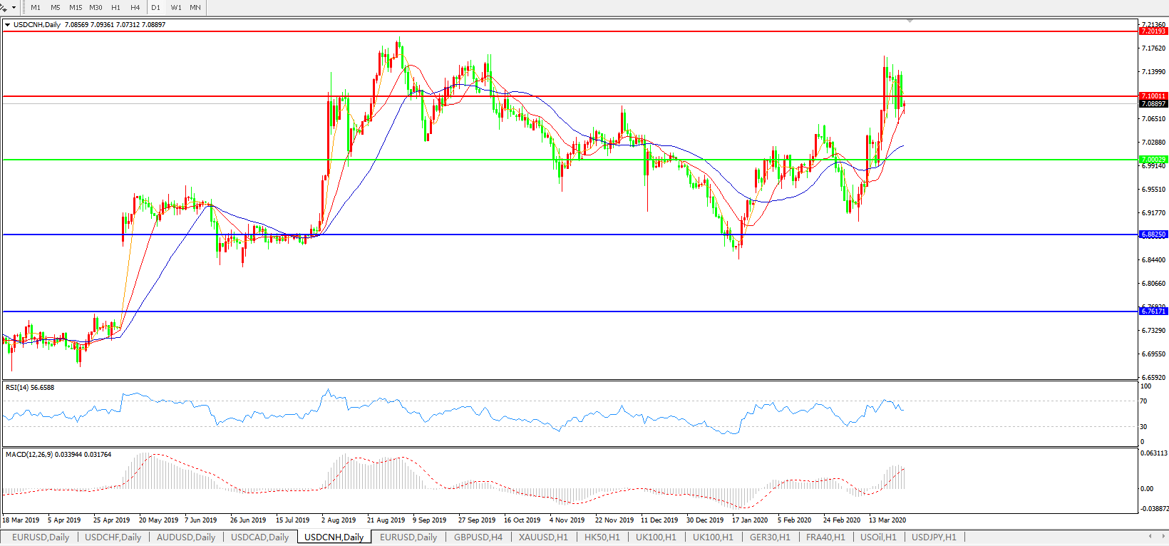美元兑人民币USDCNH    日线图: