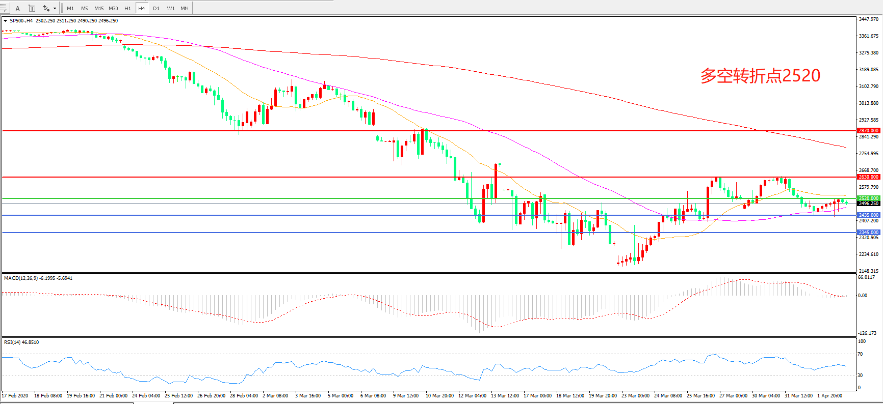 多空转折点:2520.00