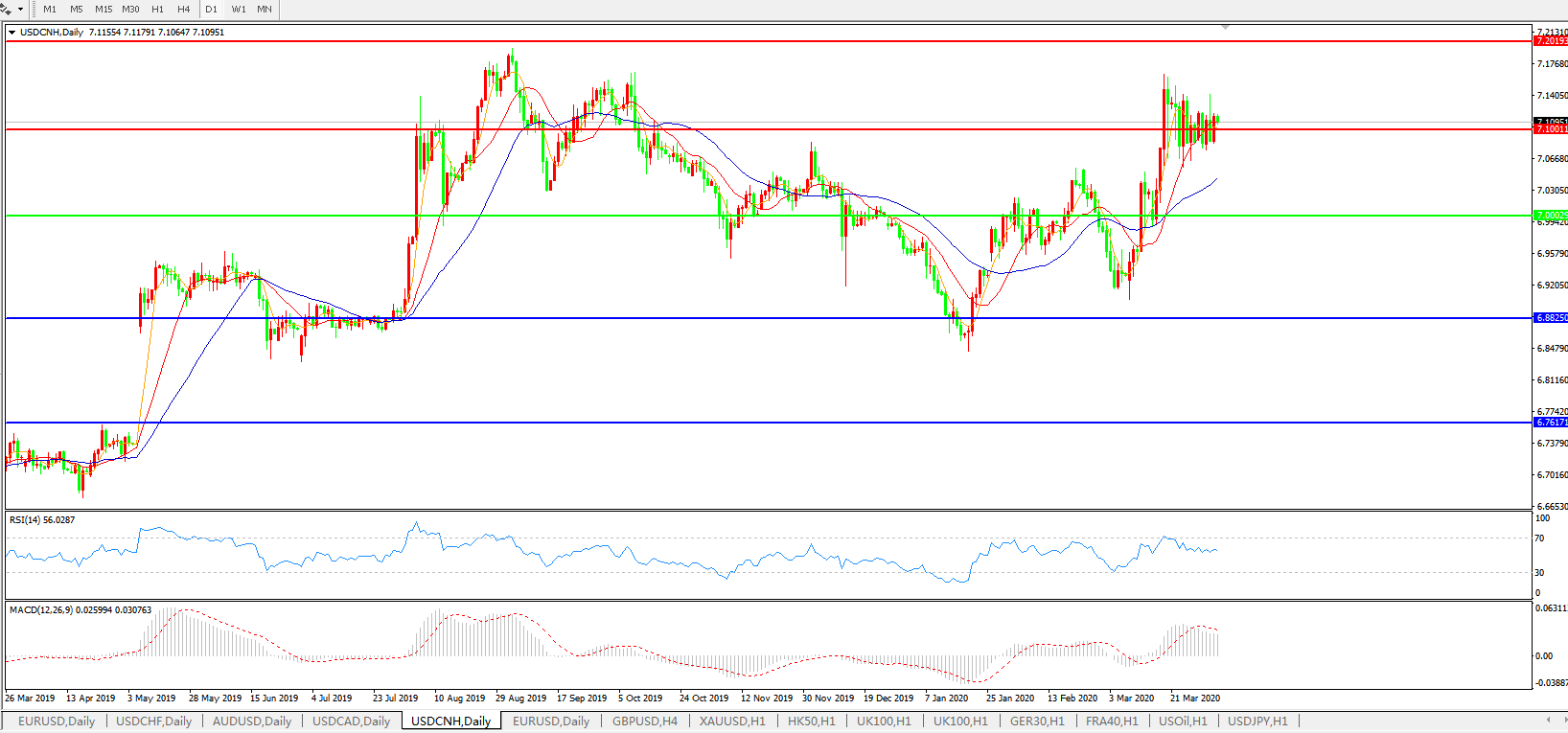美元兑人民币USDCNH    日线图: