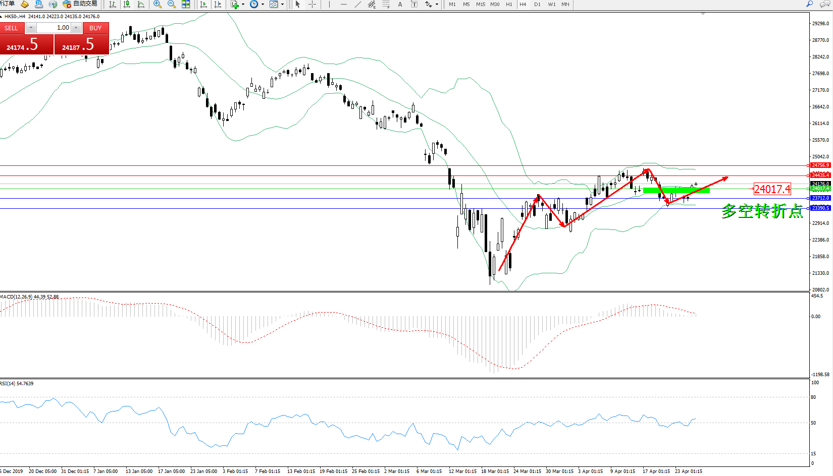 恒指HK50 ——4小时K线图显示: