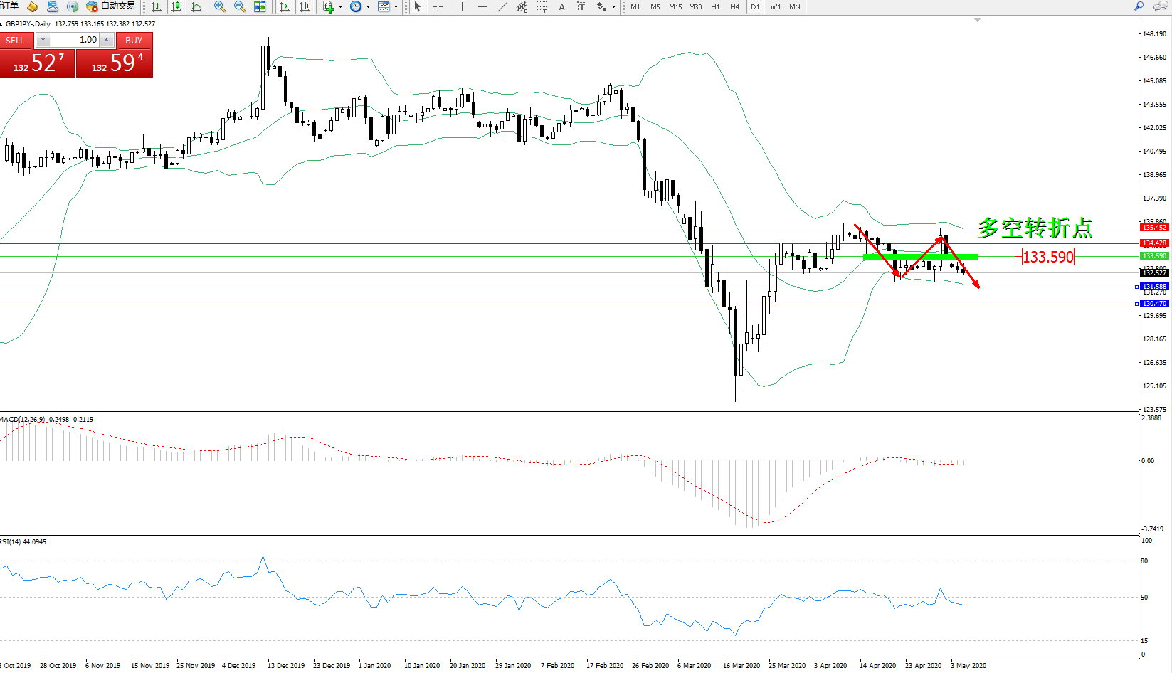 多空转折点:133.590