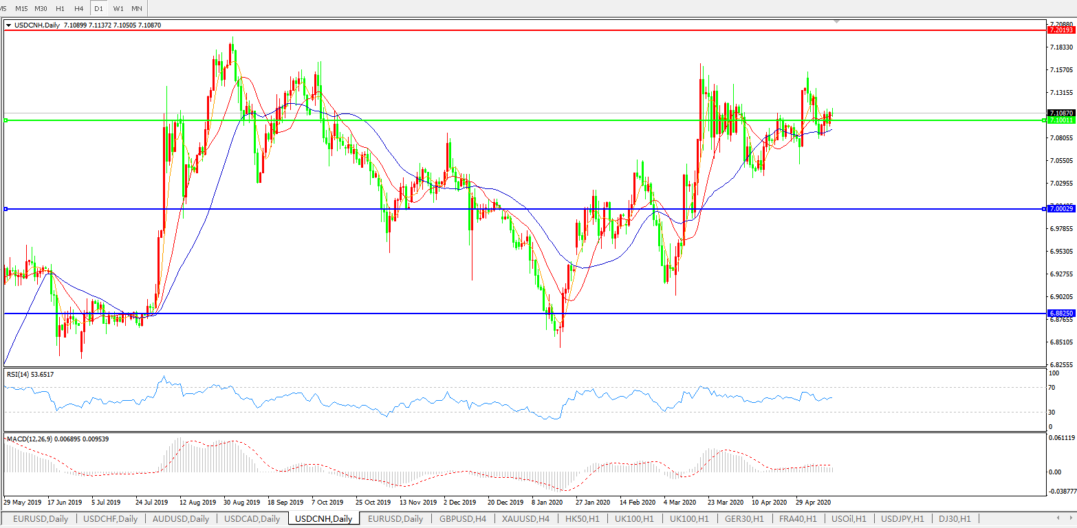 美元兑人民币USDCNH 日线图: