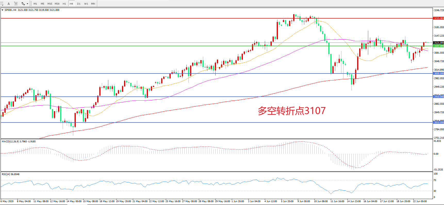 多空转折点:3107.00