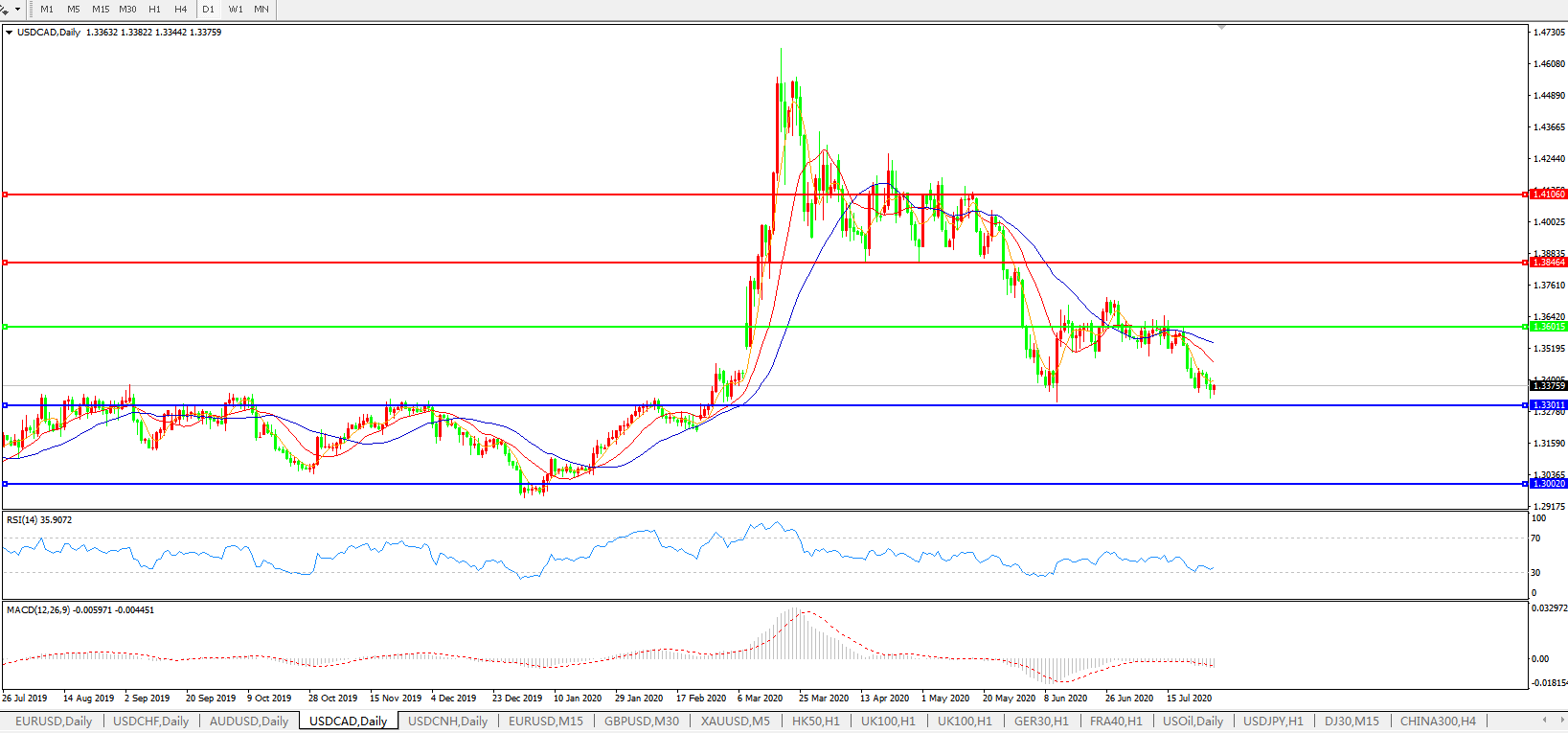 美元兑加元USDCAD 日线图: