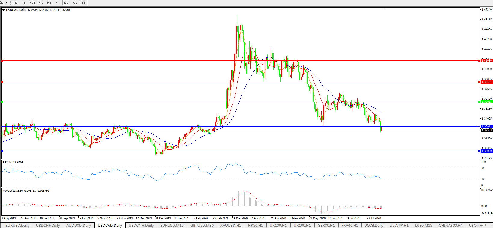 美元兑加元USDCAD 日线图: