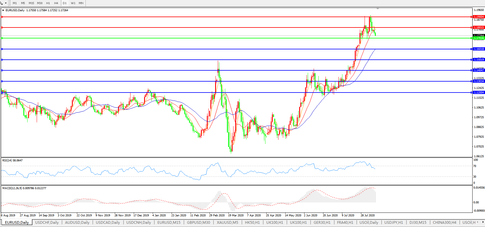 欧元兑美元EURUSD 日线图:
