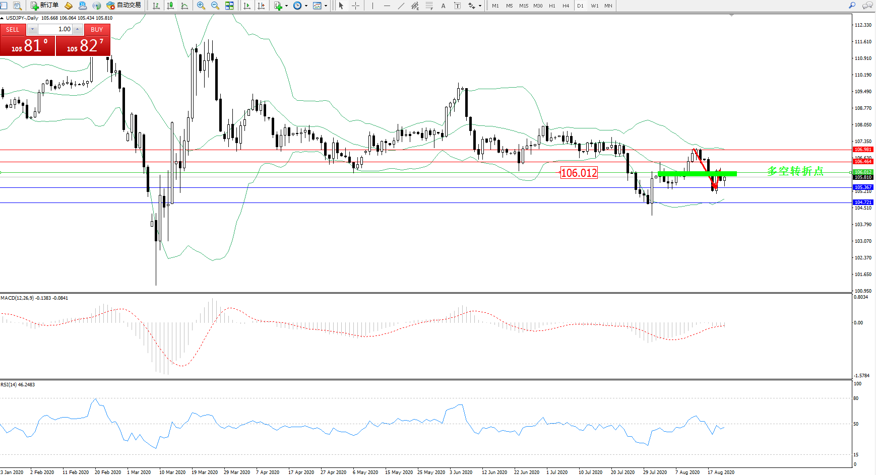 多空转折点:106.012